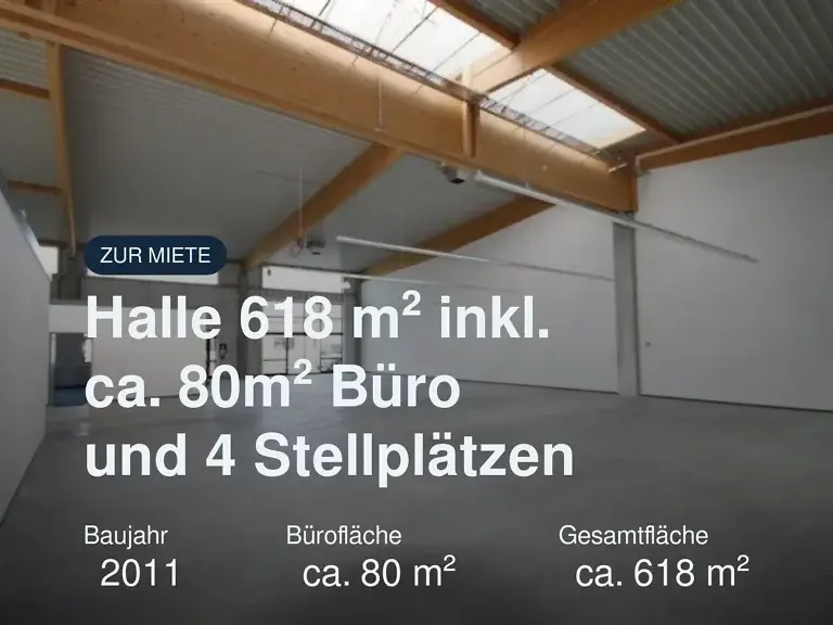 Neu im Angebot: Halle 618 m² inkl. ca. 80m² Büro und 4 Stellplätzen