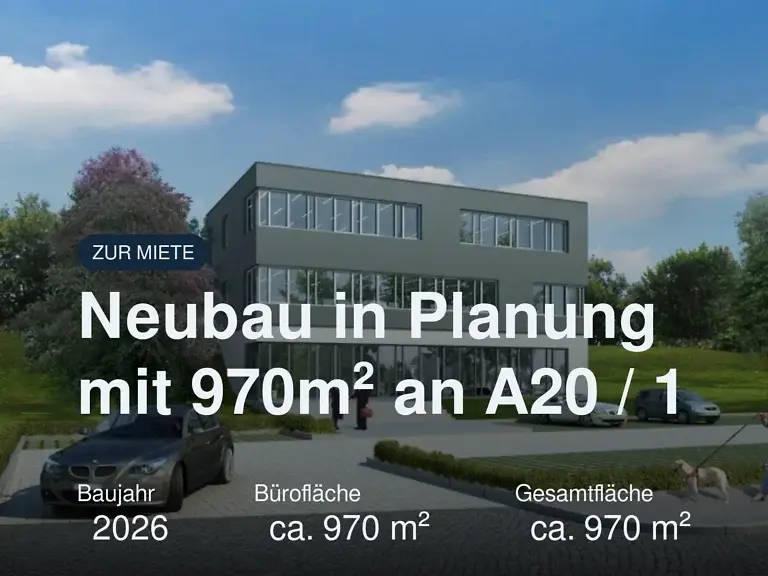 Fakten; – ca. 970m² Bürofläche auf 3Etage – attraktiver Neubau mit energetischen Fenstern – ab 500 m² teilbar – ca. 2,6 Meter Deckenhöhe zzgl. Binderhöhe – Rauchwarnmeldeanlage – Ladenfläche kann im Erdgeschoß integriert werden Auf dem Grundstück befindet sich bereits…