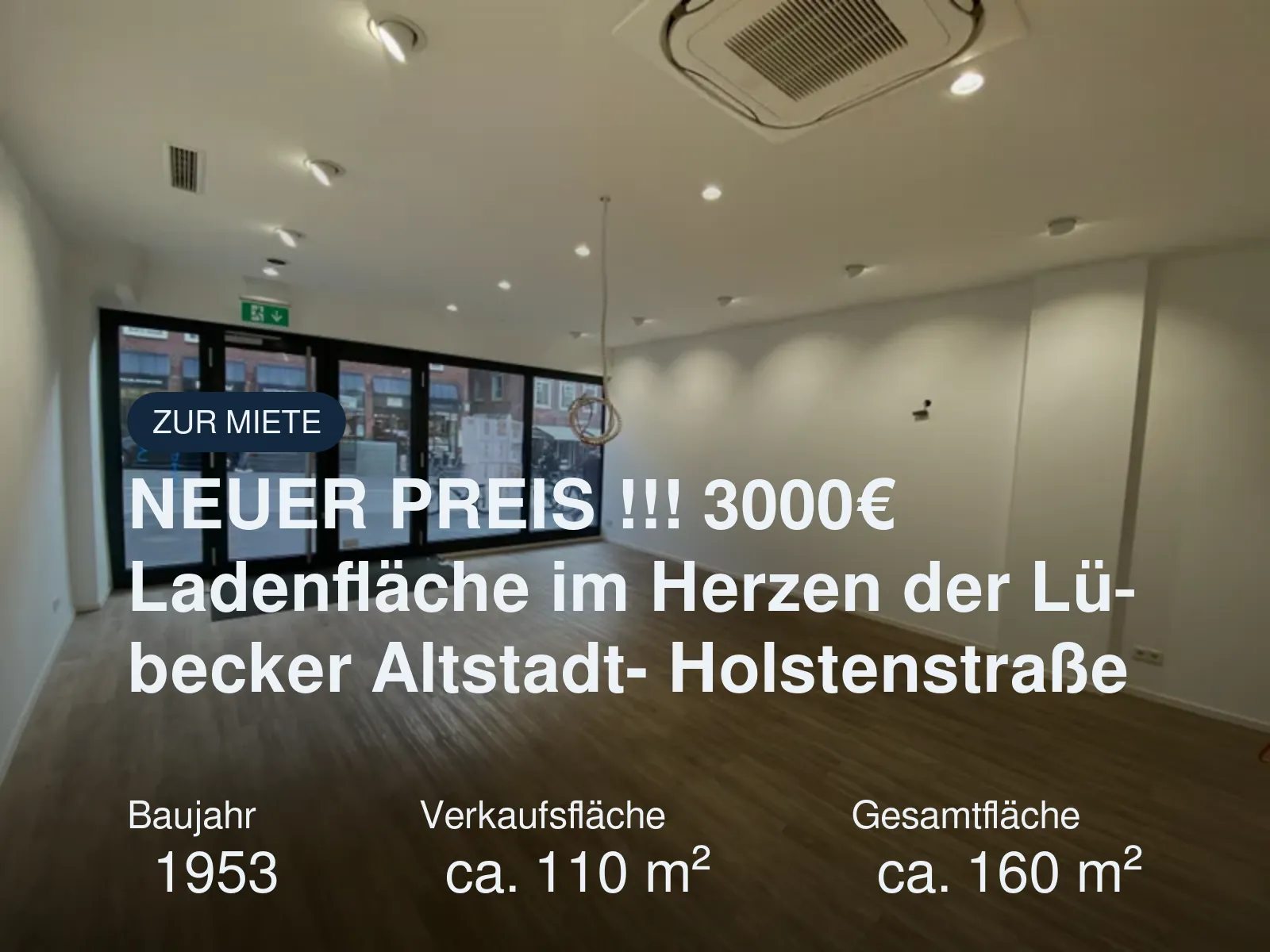 Attraktive Ladenfläche am Holstentor ! Etwa 160 m² Gewerbefläche stehen hier zur freien Verfügung. Mietbeginn und Übergabezustand sind verhandelbar. Kellergeschoß ca. 20m² Erdgeschoß ca. 110m² 1. Obergeschoß ca. 30m² Jetzt Exposé ansehen