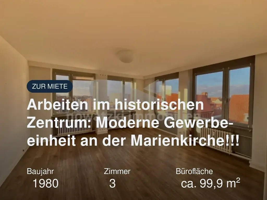 Das fünfgeschossige Geschäftshaus befindet sich im Herzen der Altstadt, an der markanten Ecke Beckergrube/Fünfhausen – nur wenige Schritte von der Marienkirche entfernt. Die Gewerbeflächen sind sowohl über das repräsentative Treppenhaus als auch über zwei Personenaufzüge barrierefrei zugänglich. Die Räumlichkeiten verteilen sich auf insgesamt 3 Zimmer mit unterschiedlichen Größen und Zuschnitten sowie einer Küche, 1 WC […]