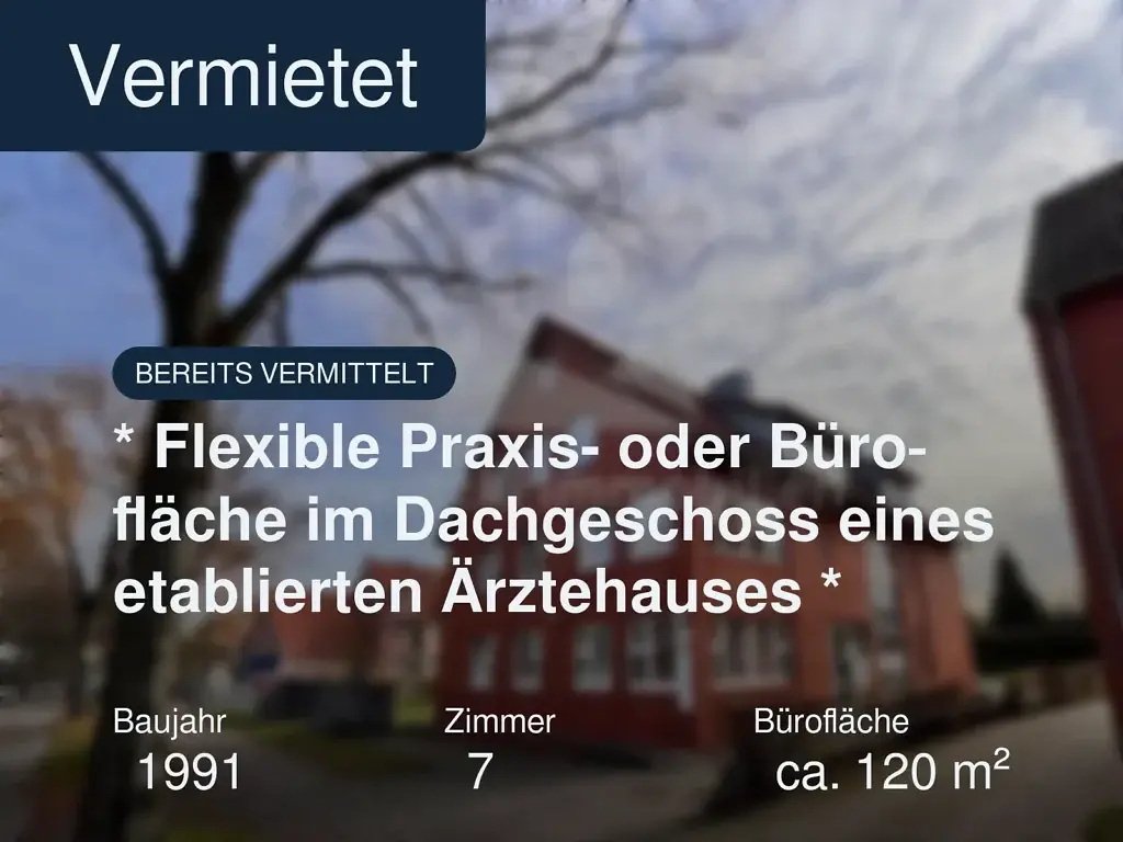 Die angebotene Immobilie ist eine Bürofläche, die sich im dritten Stock eines dreistöckigen Gebäudes aus dem Baujahr 1998 befindet. Das Gebäude ist barrierefrei zugänglich und verfügt über insgesamt 6 Parkplätze. Die Bürofläche umfasst 7 Zimmer und bietet eine Kellerfläche von 9 m². Der Gebäudezustand wird nach Vereinbarung festgelegt und die Heizung erfolgt über eine Zentralheizung. […]