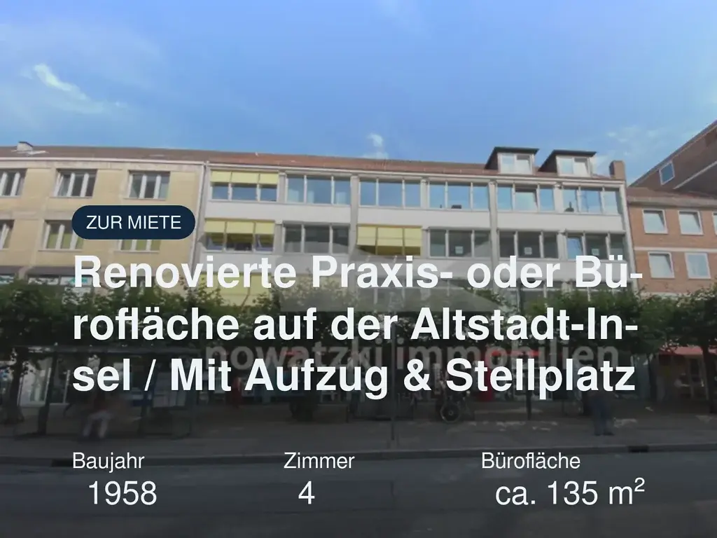 In diesem gepflegten, dreigeschossigen Wohn- und Geschäftshaus bieten wir Ihnen im 3. Obergeschoss eine renovierte Büro- oder Praxisfläche an. Die Einheit ist sowohl über das großzügige Treppenhaus als auch bequem per Fahrstuhl erreichbar. Der helle Empfangsbereich bildet den Mittelpunkt der Fläche und ermöglicht den direkten Zugang zu allen Büroräumen. Jeder Raum verfügt über große Fensterflächen, […]