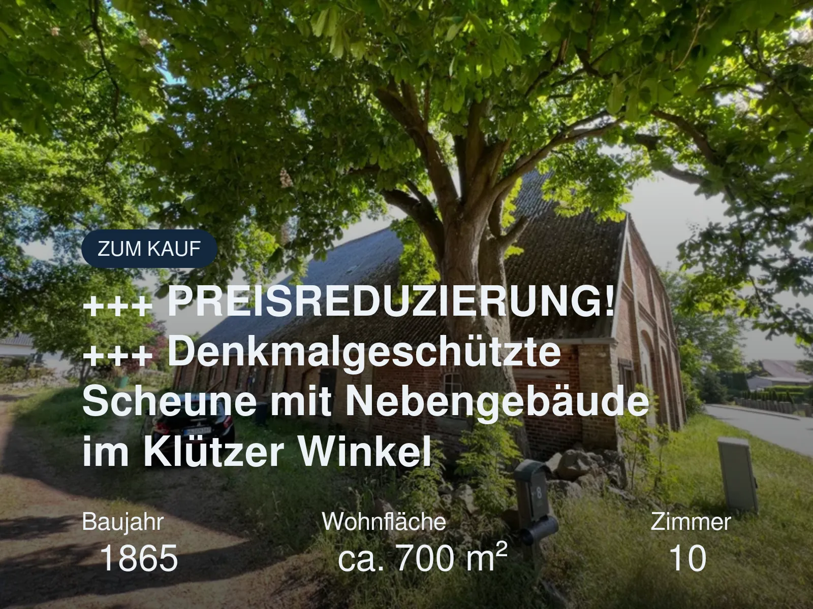 Neu im Angebot: +++ PREISREDUZIERUNG! +++ Denkmalgeschützte Scheune mit Nebengebäude im Klützer Winkel